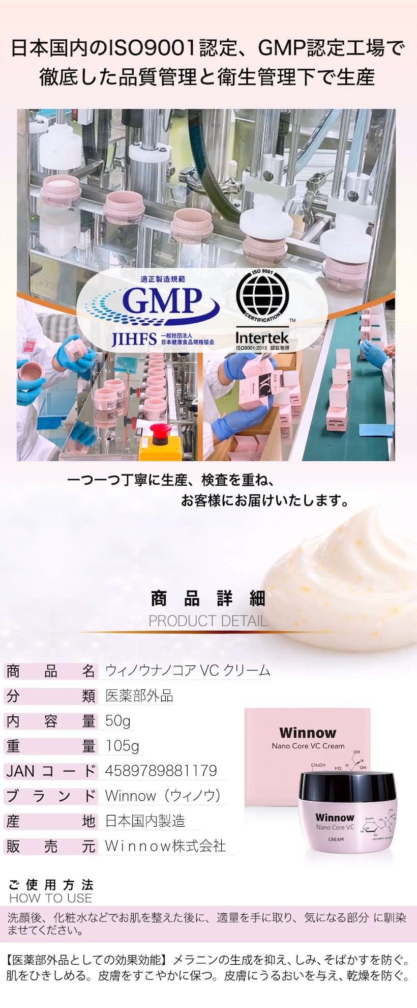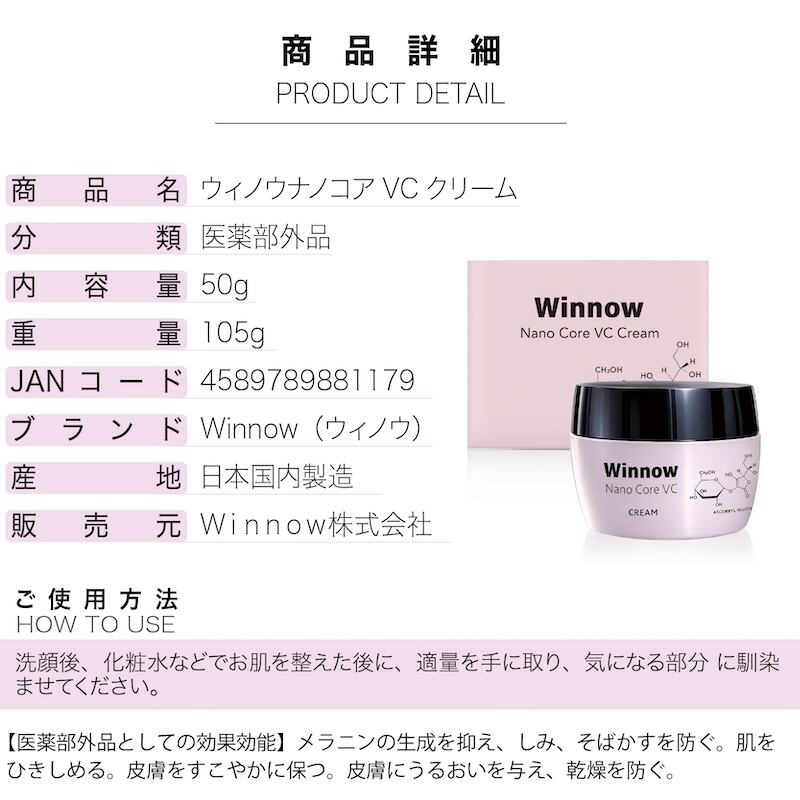 ウィノウナノコアVCクリーム 50g 美白 ビタミンC誘導体 医薬部外品 しみ そばかす ひきしめ 毛穴 保湿 国産 ホワイトニング