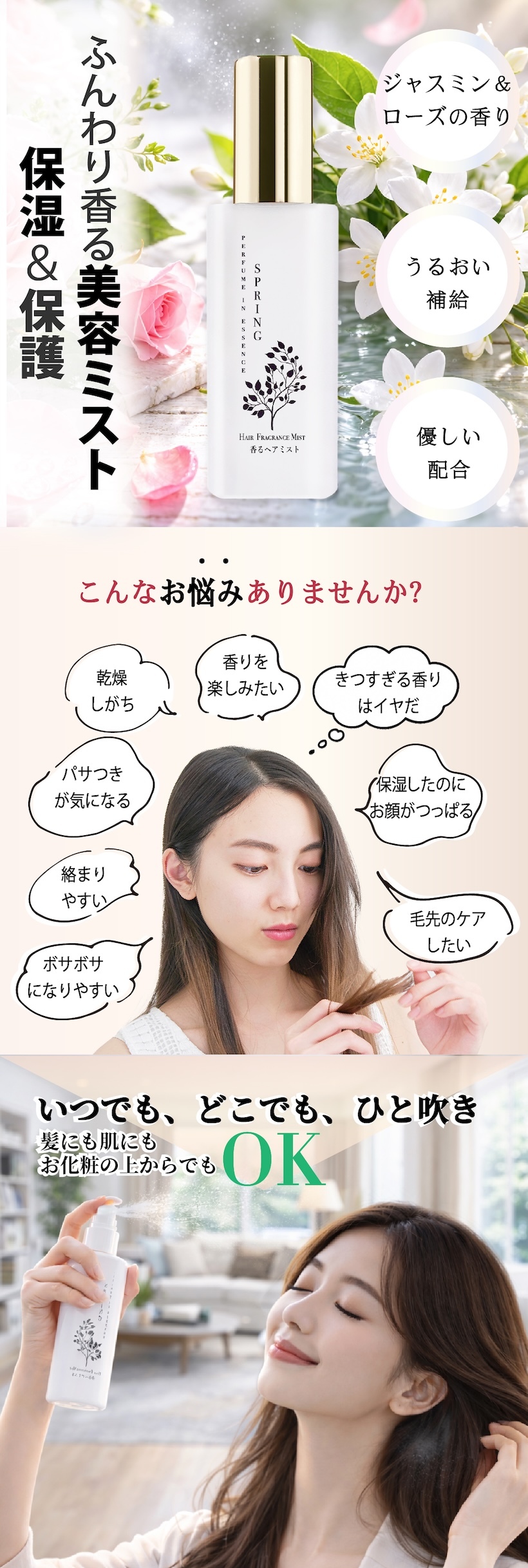香るヘアミスト ローズ&ジャスミンの香り アルコールフリー [ パフュームインエッセンスSPRING 80ml] スカルプケア フレグランス
